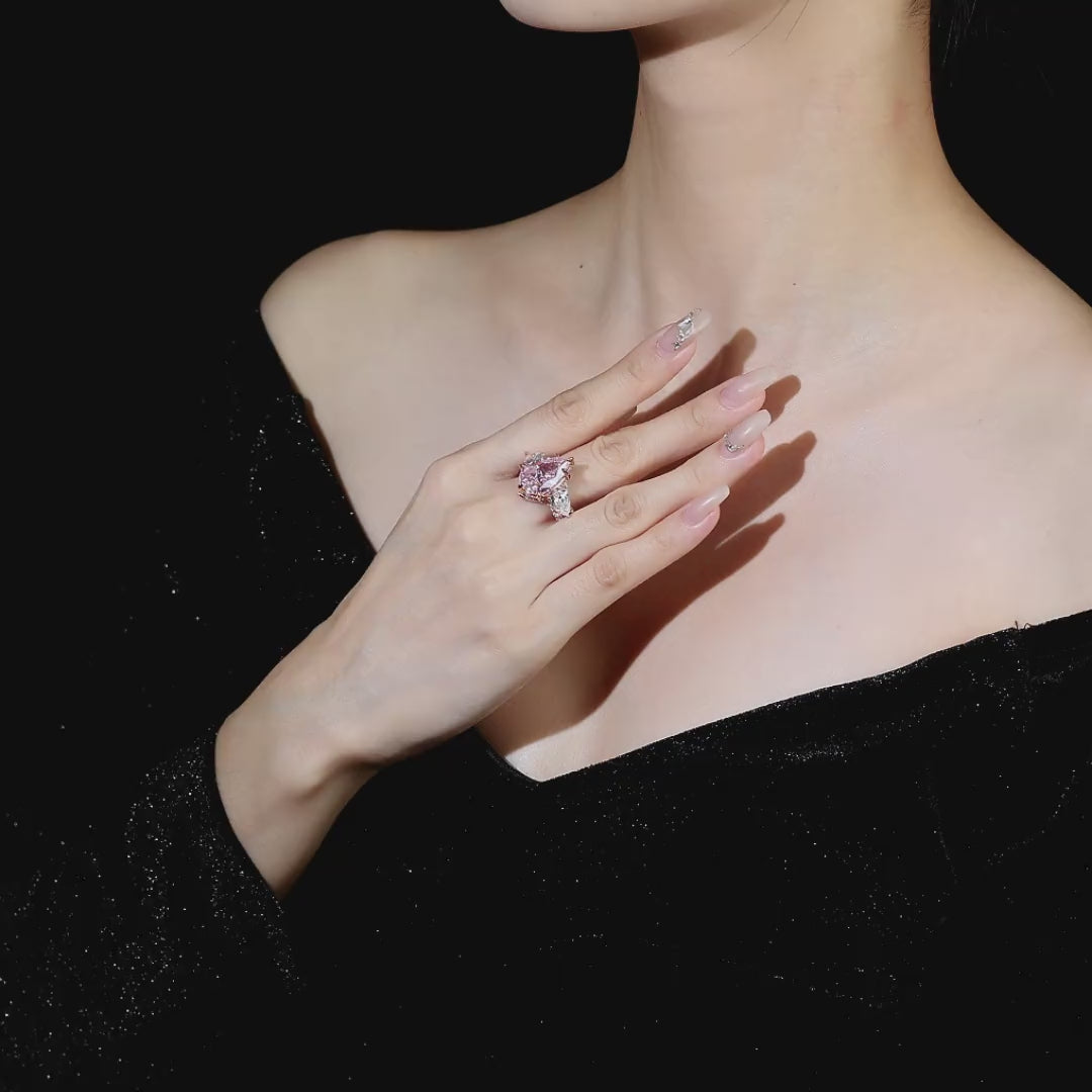 この「エターナル・エレガンス」シリーズの指輪は、「一瞬で万年」という名前が込められたように、優雅さが長く続くデザインになっています。ピンクの宝石はしっとりとした雰囲気の水滴の形をしていて、柔らかい光り方をするのが魅力です。925 銀で作られたこの指輪は、手にはめるとそっと存在感を示してくれて、普段の装いに少し華やかさを加えたいときや、特別な瞬間を彩りたいときにぴったりです。