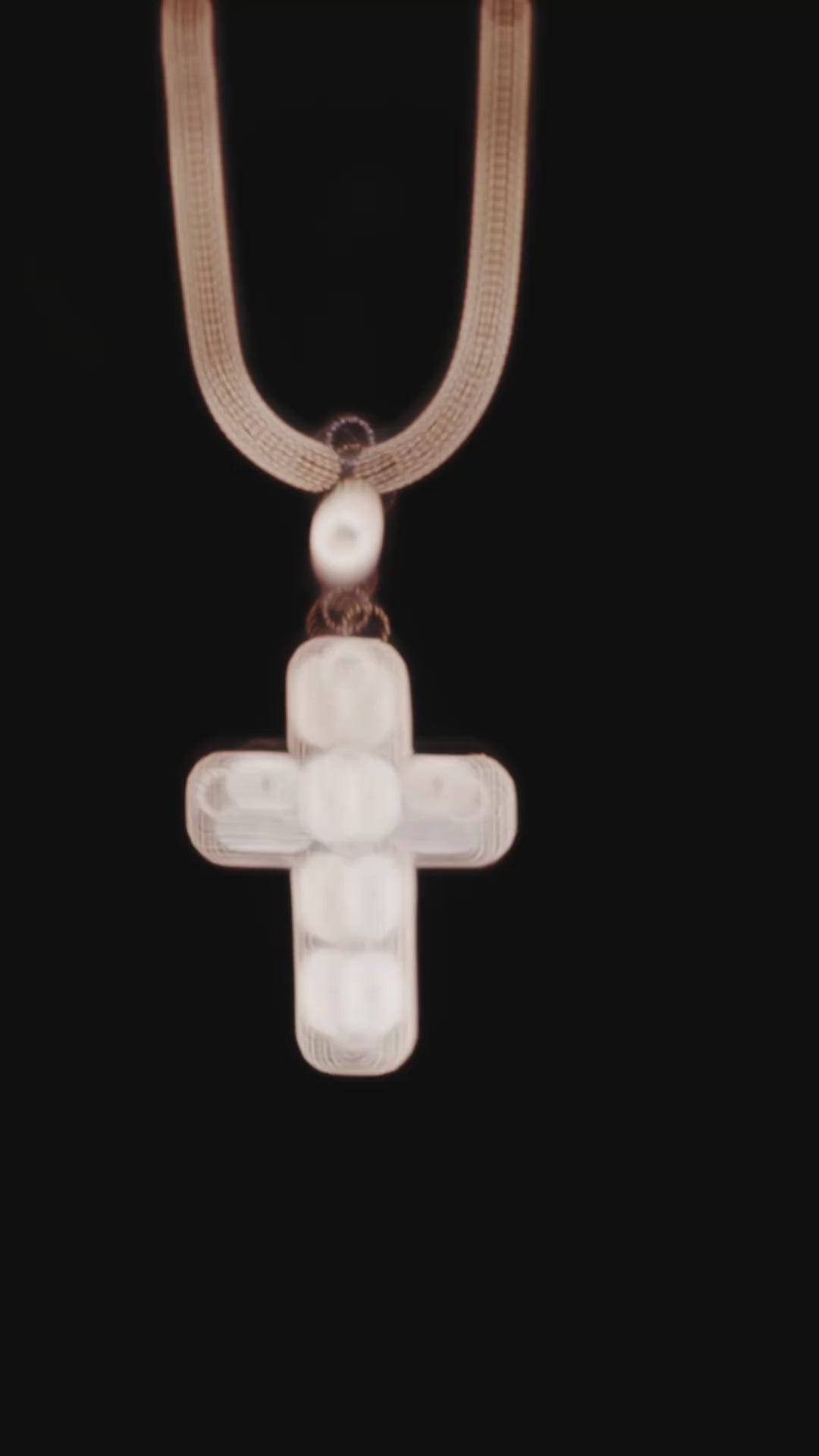 十字架を主体とするデザインで、シンプルで大気で、かつファッション感があります。十字架にはダイヤモンドがいっぱいミセントされており、光の照射を受けると目を見張る輝きを放ち、非常に目立ちます。十字架にはいくつかの丸い点のデザインがあり、ネックレスにディテールと層次感を加え、十字架により軽やかな印象を与えます。