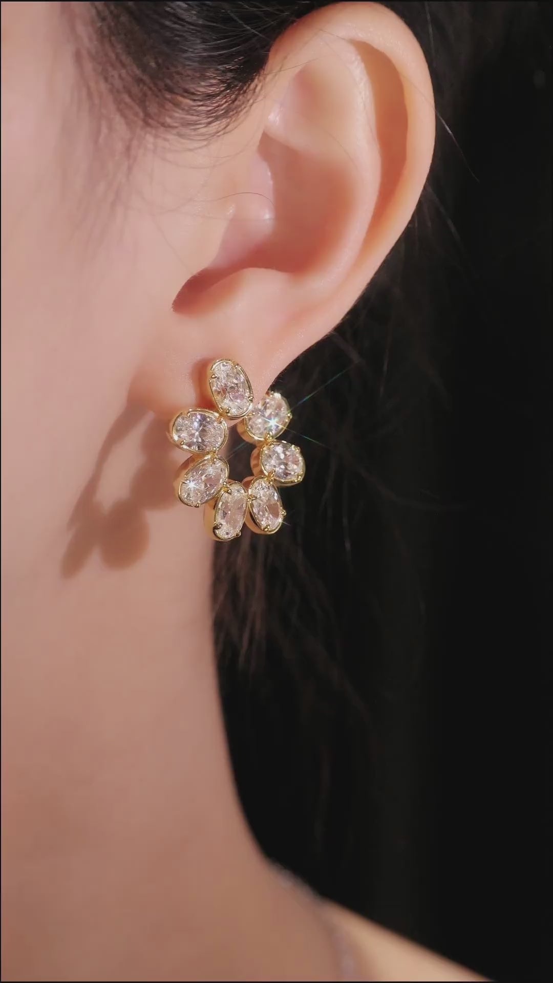 #30335 金色のハトの卵型ダイヤフルペタル豪華に取り付けた万能イヤリング(925銀)