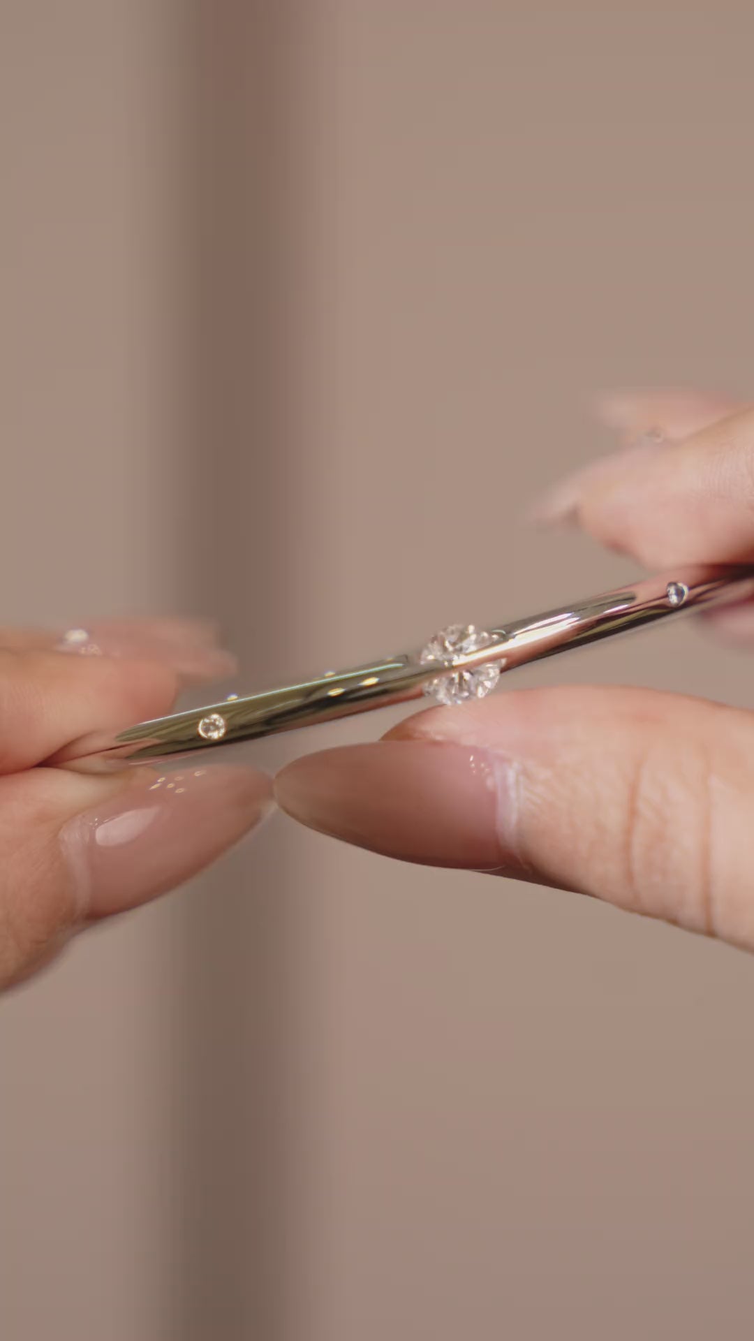 シンプルなラインがブレスレットの輪郭を描き、925 銀の素材が清涼感ある光沢を与えます。中央のシングルダイヤモンドが星のように輝き、小さくて精巧で、スッキリとした銀の輪と出会い、キラキラとした火花を散らします。極簡主義の中には、ドキドキするロマンが秘められており、日常から華やかな場面まで対応でき、地味でありながら目を引く手首の風景です。