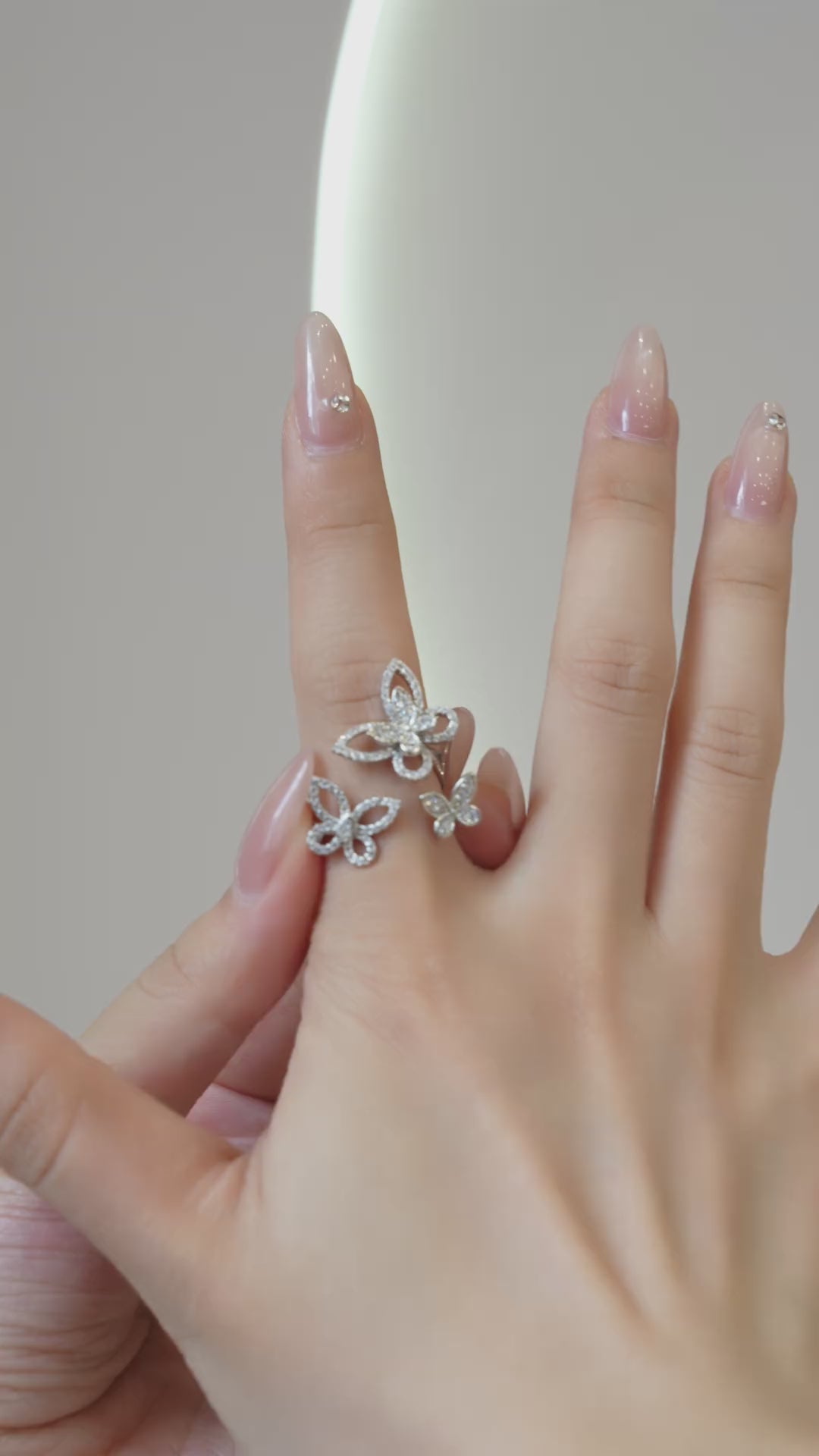 #1043【キラキラ蝶】ファッション三蝶透かし開口ダイヤモンドいっぱいの指輪(925 銀)